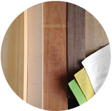オーク・ウォルナット・タモ・チェリー・ブナ・ホワイトアッシュなどの広葉樹の無垢材を主に使います。木材の他にも、金属やガラス・ファブリック・革など、木との相性が良く、経年変化を楽しめる素材との組合せも積極的に試みています。オーダー家具については、ご要望に合わせて材種からご提案致します。